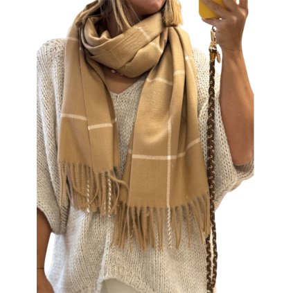 Jemnost, která hřeje pohledem. Tahle kašmírová šála je jako dotek tepla v chladném dni - měkká, lehoučká a neuvěřitelně příjemná na kůži. V nadčasové barvě s decentním kostkovaným vzorem se stane tvým společníkem pro každý podzimní i zimní den.
