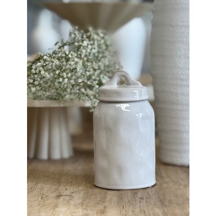 Vneste do svého interiéru nádech elegance a praktičnosti s touto stylovou keramickou dózou s víkem. Díky ručně glazovanému povrchu a jemně strukturovanému designu se skvěle hodí do moderních i rustikálních interiérů.