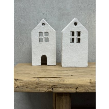 Rozsviťte svůj večer s tímto minimalistickým domečkem z tvrzené papírové hmoty zpevněné celulózou v bílé matné barvě. Jeho jemný. ručně tvořený vzhled dodá interiéru útulnost a klid. Stačí dovnitř vložit LED svíčku nebo světelný řetěz a domeček se promění v malé kouzelné světýlko, které rozzáří poličku, stůl, či okenní parapet.
