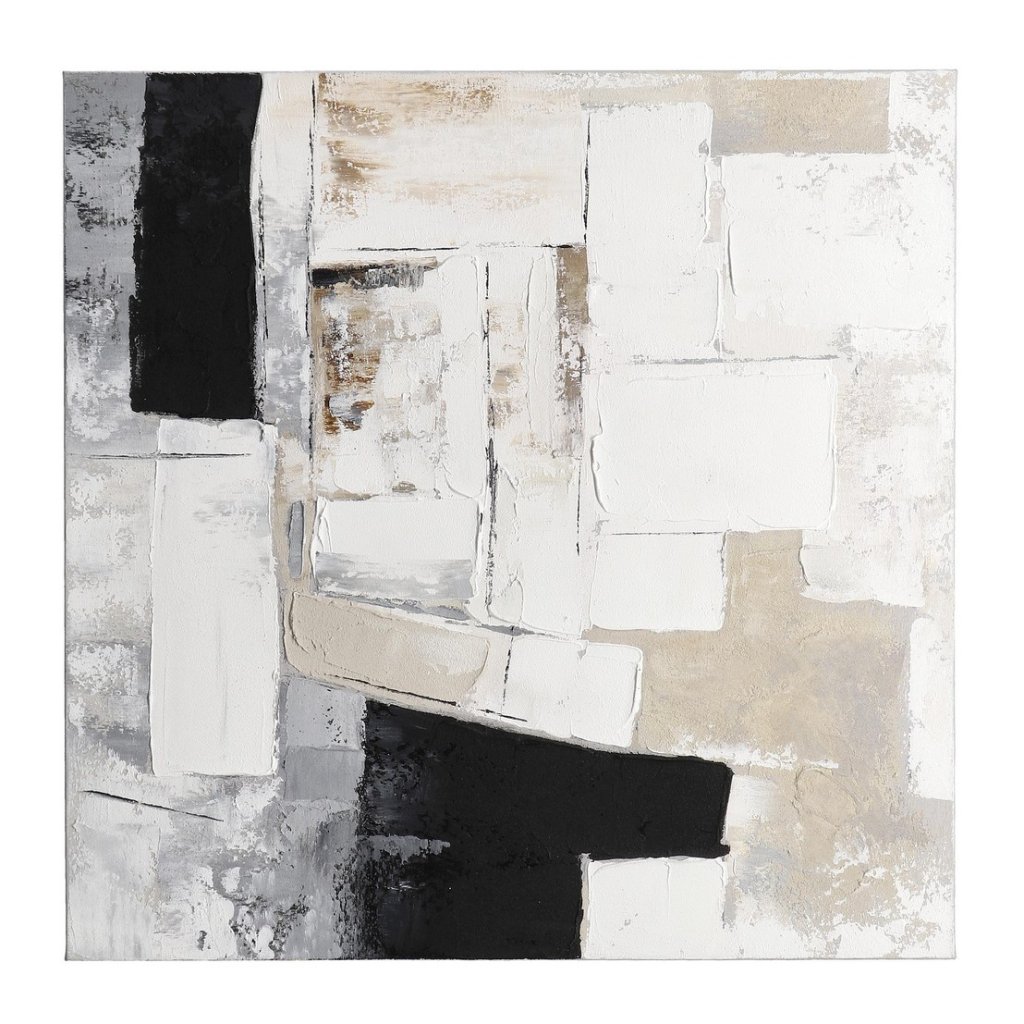 Minimalistický obraz v neutrálních tónech bílé, béžové a černé, který dokonale podtrhne eleganci moderního interiéru. Každý tah štětce působí jako vrstvy příběhu - střídmost, hloubka a vyváženost. Díky své harmonické barevnosti se snadno kombinuje s přírodními materiály, betonem, lnem či dřevem.