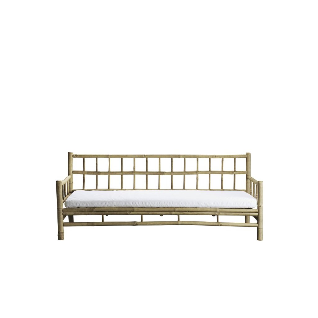 Objevte kouzlo přírodních materiálů a nadčasového designu. Tato bambusová pohovka s bílou matrací přináší harmonii skandinávského minimalismu a přirozené krásy bambusu.