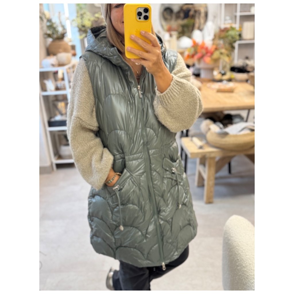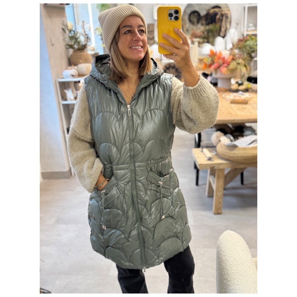 Dlouhá vesta na zip / KHAKI / L