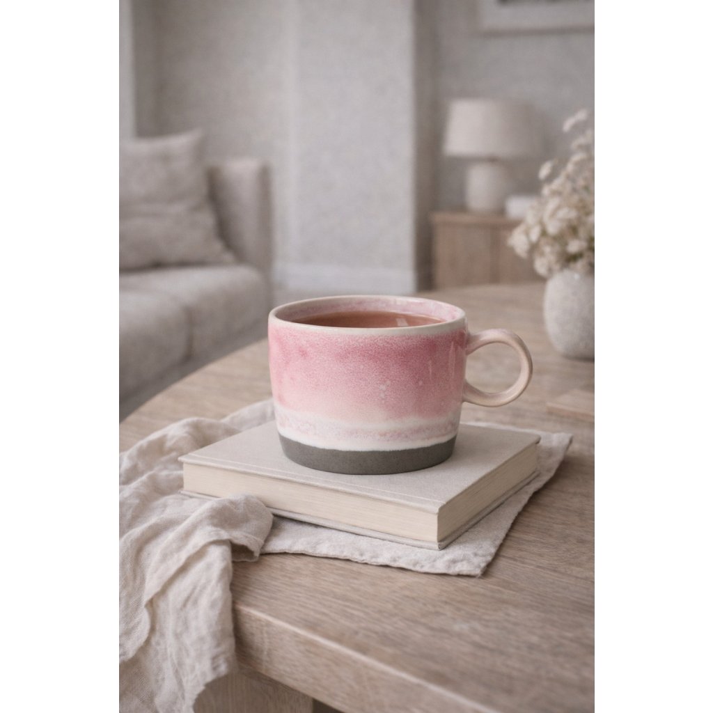 Hrnek, který v sobě nese klid, ženskost a jemnost. Ručně glazovaný v Dánsku, s nádherným přechodem matné růžové do přirozeně šedého tónu. Každý kus je originál - s drobnými odchylkami, které mu dodávají osobitý charakter.