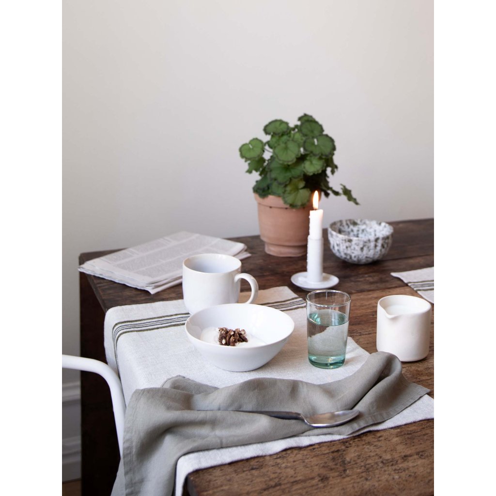 Ručně vyráběný kameninový hrnek, který si zamilujete pro jeho jednoduchost, přirozenost a jemný lesk bílý glazury. Díky reaktivní glazuře má každý hrnek jedinečný odstín i strukturu - žádné dva nejsou stejné, stejně jako žádné dvě ranní kávy nejsou stejné.