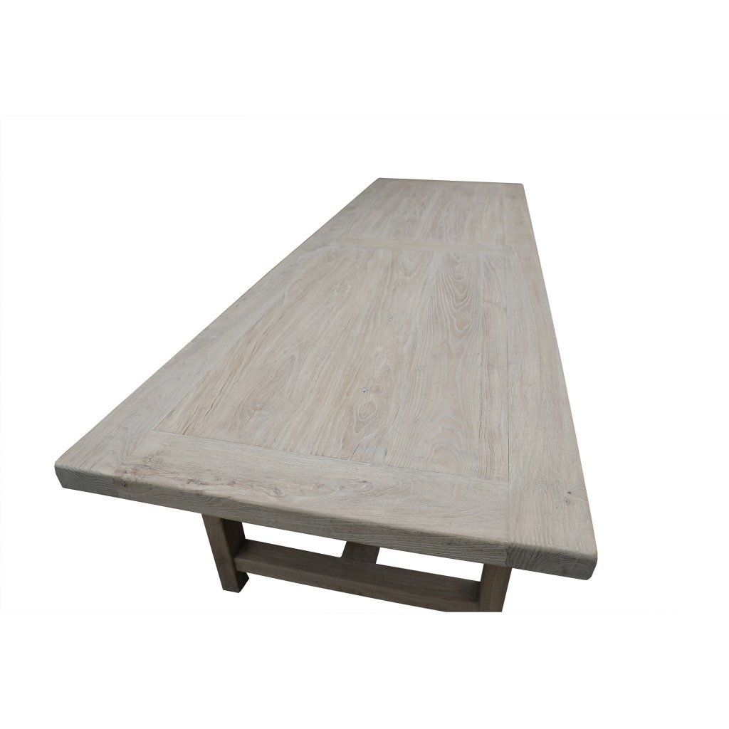 Tento exkluzivní jídelní stůl o rozměrech 300 x 100 x 78 cm přináší do vašeho interiéru dokonalou harmonii minimalismu, přírodních materiálů a precizního řemeslného zpracování. Vyroben z běleného jilmového dřeva, je každým svým detailem unikátní a stává se nadčasovým prvkem, který nevyjde z módy. Každý kus je ručně zpracován, což zajišťuje, že žádné dva kusy nejsou stejné - získáváte originální dílo, které si podmaní váš prostor.