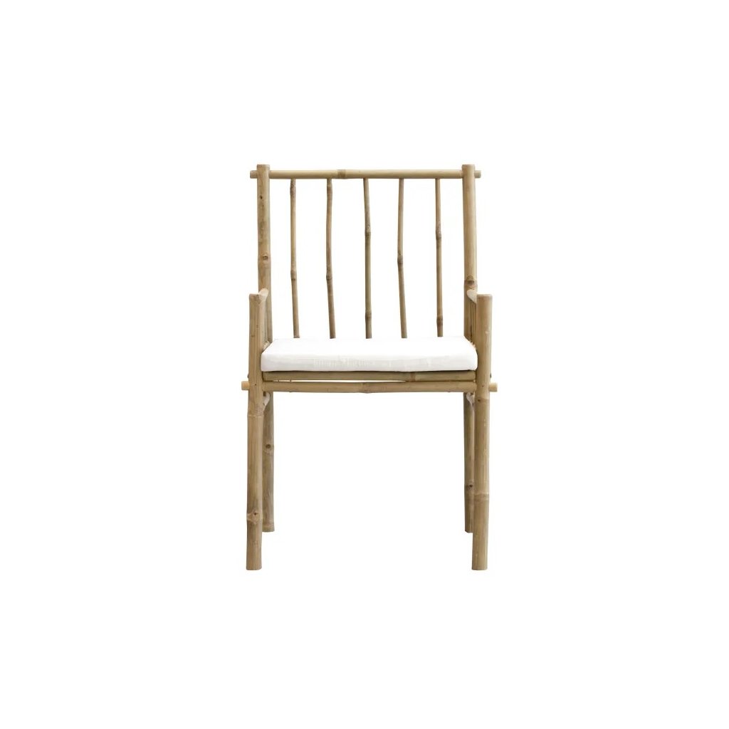 RUČNĚ VYROBENÁ BAMBUSOVÁ ŽIDLE S BÍLÝM PODSEDÁKEM VHODNÁ DO INTERIÉRU I EXTERIÉRU.