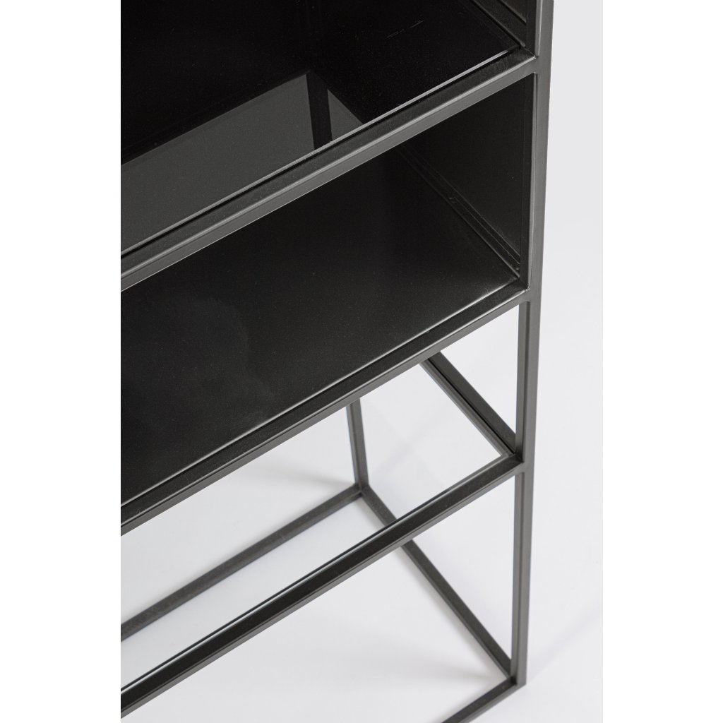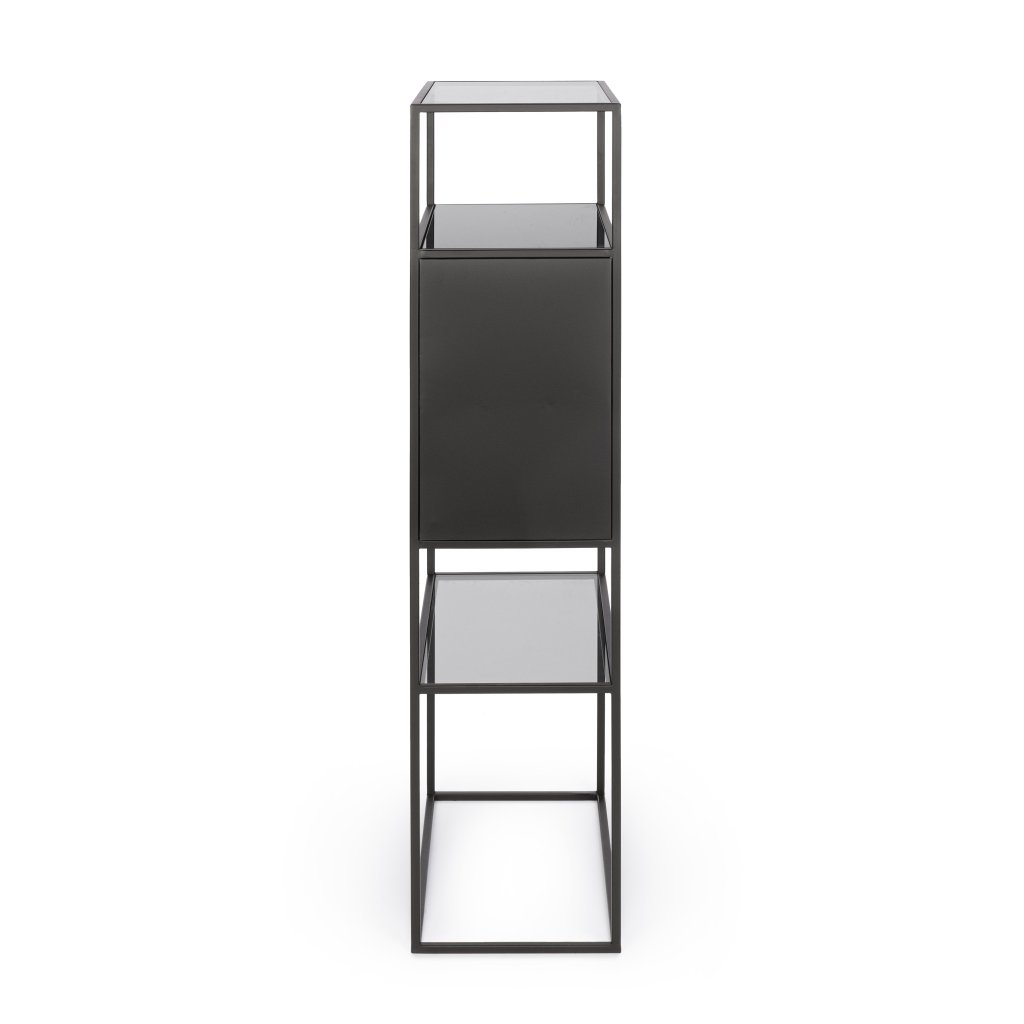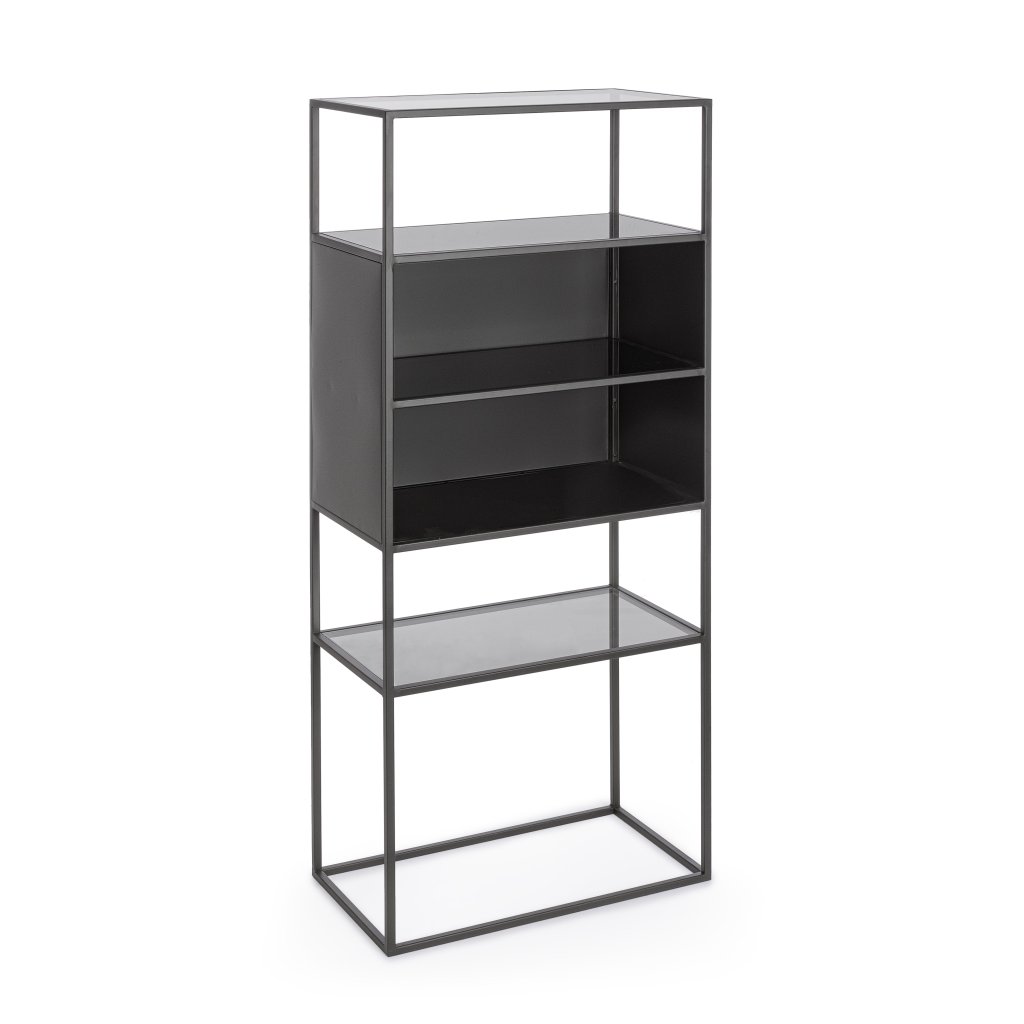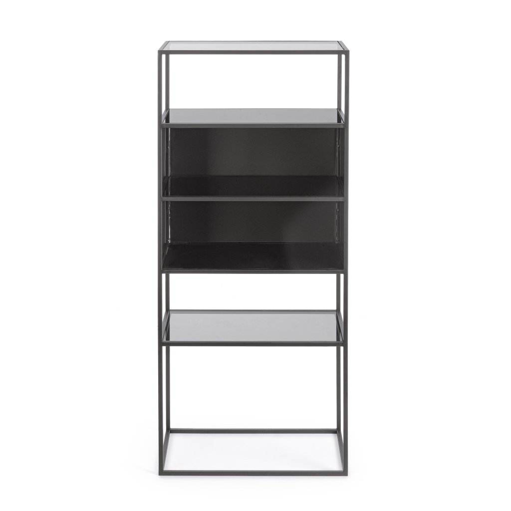 OCELOVÁ KONSTRUKCE S EPOXIDOVÝM PRÁŠKOVÝM NÁSTŘIKEM, TŘI POLICE Z TVRZENÉHO SKLA, JEDNA OCELOVÁ POLICE.