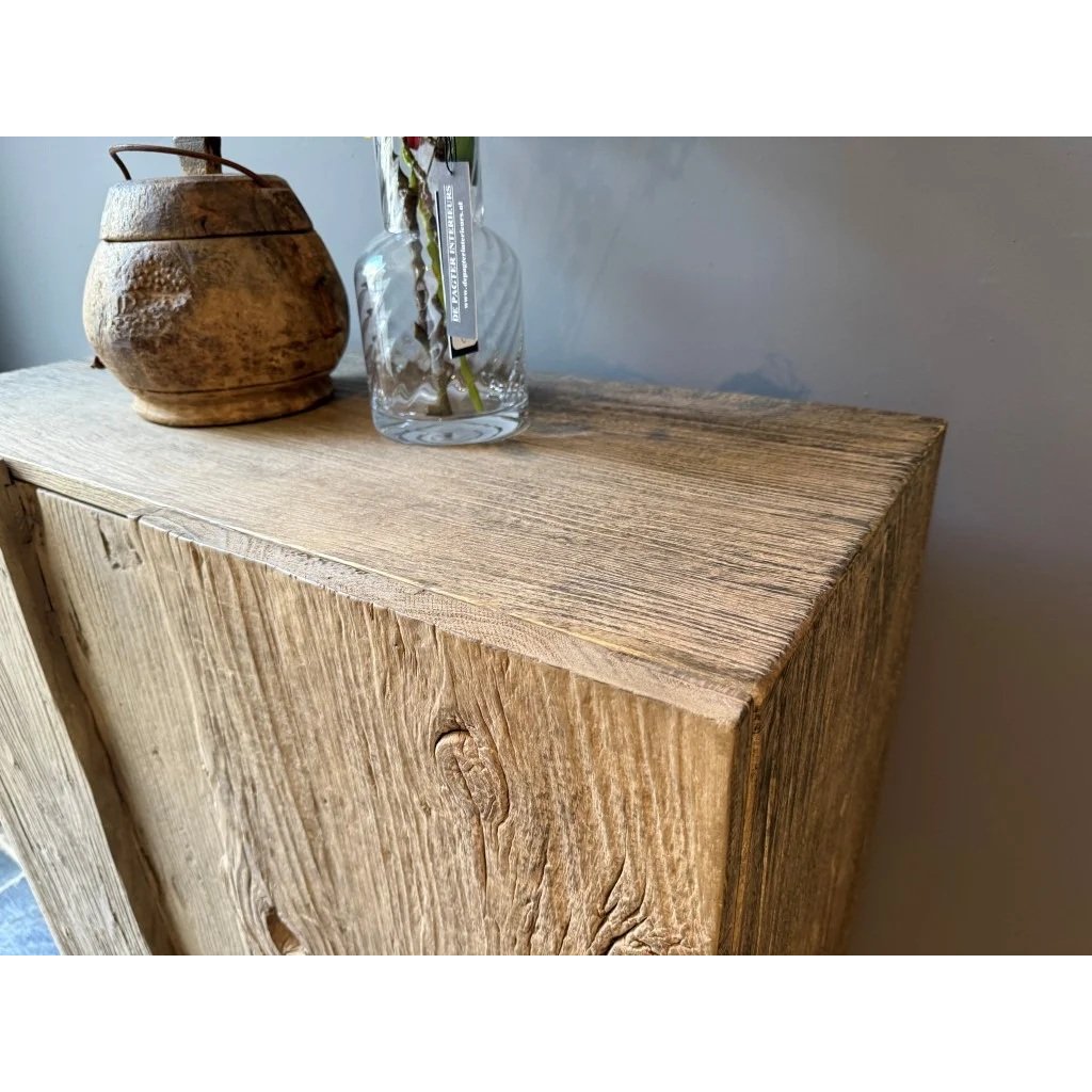 Tato komoda JAPANDI je víc než úložný prostor - je to designový solitér s duší a příběhem. Vyrobena z masivního 100 let starého jilmového dřeva, který si v sobě nese jedinečnou strukturu a nepravidelnosti, které vznikly působením času a přírody.