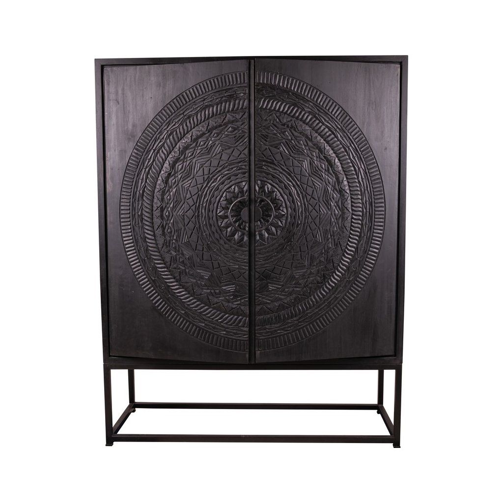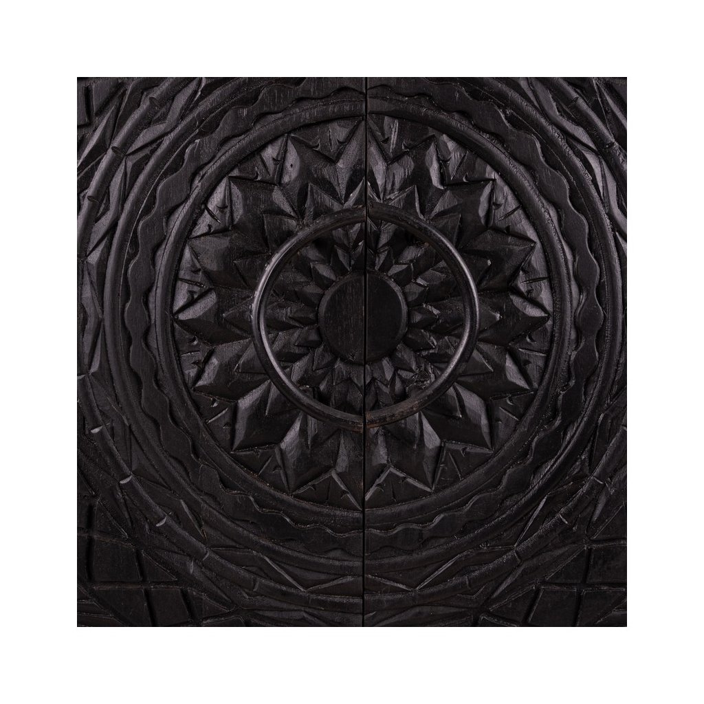 Komoda UNIQUE ROUND black z masivního teakového dřeva v elegantní černé barvě je výrazným solitérem pro moderní i eklektický interiér. Dominantním prvkem jsou dveře s precizní kruhovou řezbou, která vytváří jemnou hru světla a stínu a dodává nábytku hloubku a charakter.