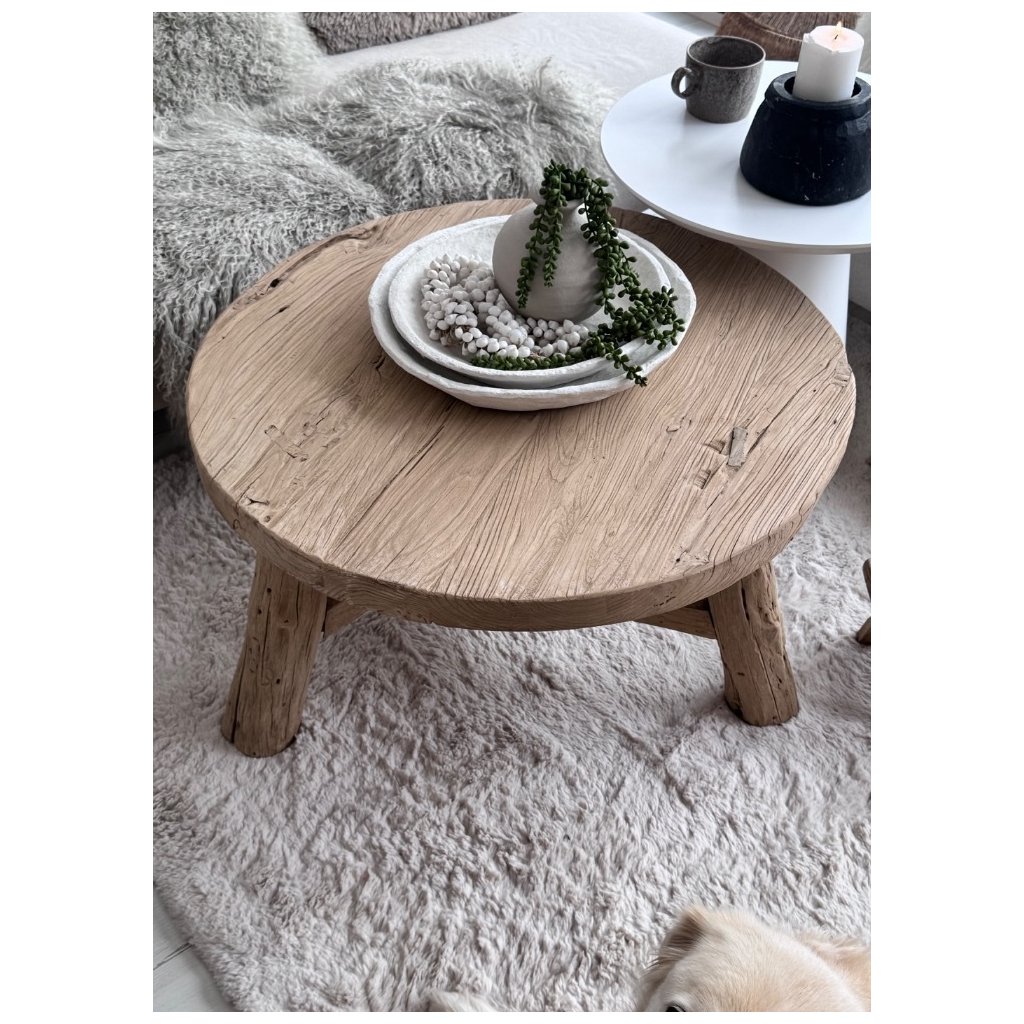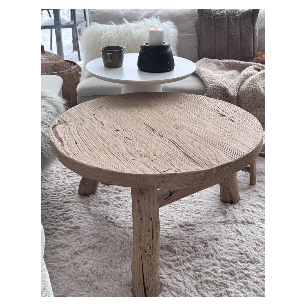 Masivní kulatá deska a stabilní nohy z jednoho kusu dřeva dávají stolu přirozenou sílu, klid a harmonii, kterou pocítíte okamžitě po vstupu do prostoru. Díky svému tvaru a materiálu je ideální volbou pro interiéry laděné do wabi-sabi, japandi, boho i přírodního minimalismu. Podle principů feng shui přináší staré jilmové dřevo do domova uzemnění, stabilitu a pozitivní energii. Je to stůl, který propojuje minulost se současností a stává se přirozeným středobodem obývacího pokoje.