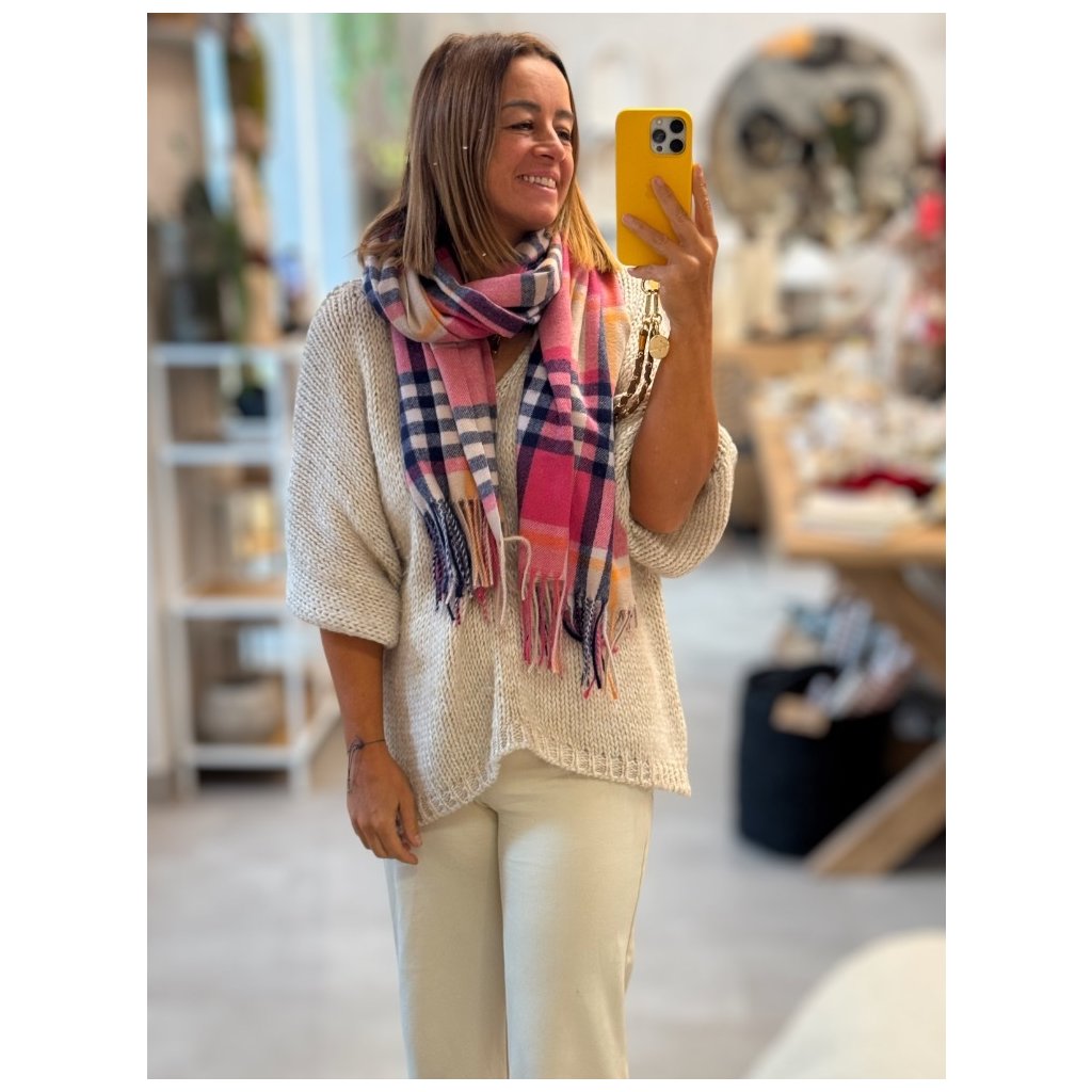 Měkká, hřejivá, s barvami, které ti rozzáří i nejchladnější den. Tahle šála tě obejme stejně jemně jako oblíbený svetr a dodá každému outfitu špeku radosti a ženskosti.