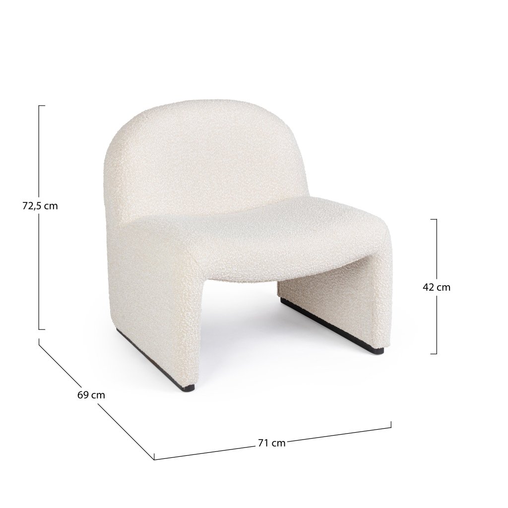Jedinečný minimalistický design v podobě tohoto lounge křesla v překrásné smetanové barvě vnese do vašeho interiéru či kanceláře jedinečný pocit útulnosti.