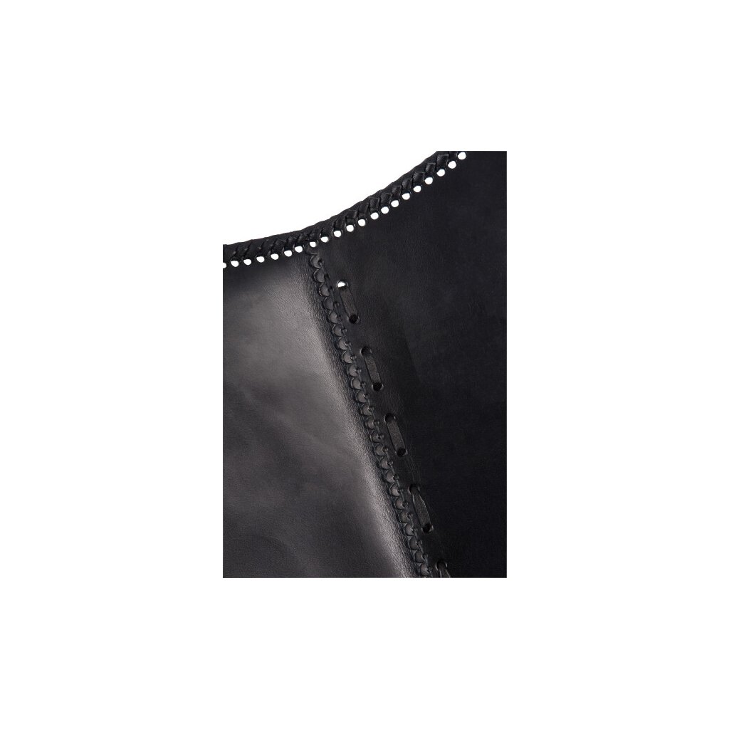 Elegantní a nadčasové lounge křeslo v černé barvě spojuje moderní design s přírodními materiály. Potah z pravé hovězí kůže působí luxusně, zatímco subtilní kovová konstrukce dodává křeslu lehkost a vzdušnost. Díky ergonomickému tvaru nabízí maximální pohodlí - ideální volba pro váš obývací pokoj, ložnici, pracovnu nebo stylový interiér vaší chaty.