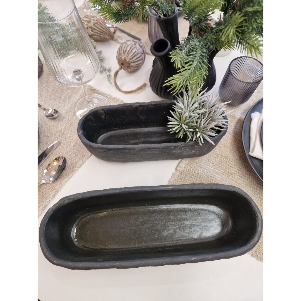 Použít ji můžete jako květináč, dekorativní nádobu na větvičky, suché květiny, svíčky či aranžmá na stůl. Díky své délce 33 cm krásně vynikne jako samostatný solitér, ale i ve skupině s dalšími doplňky.