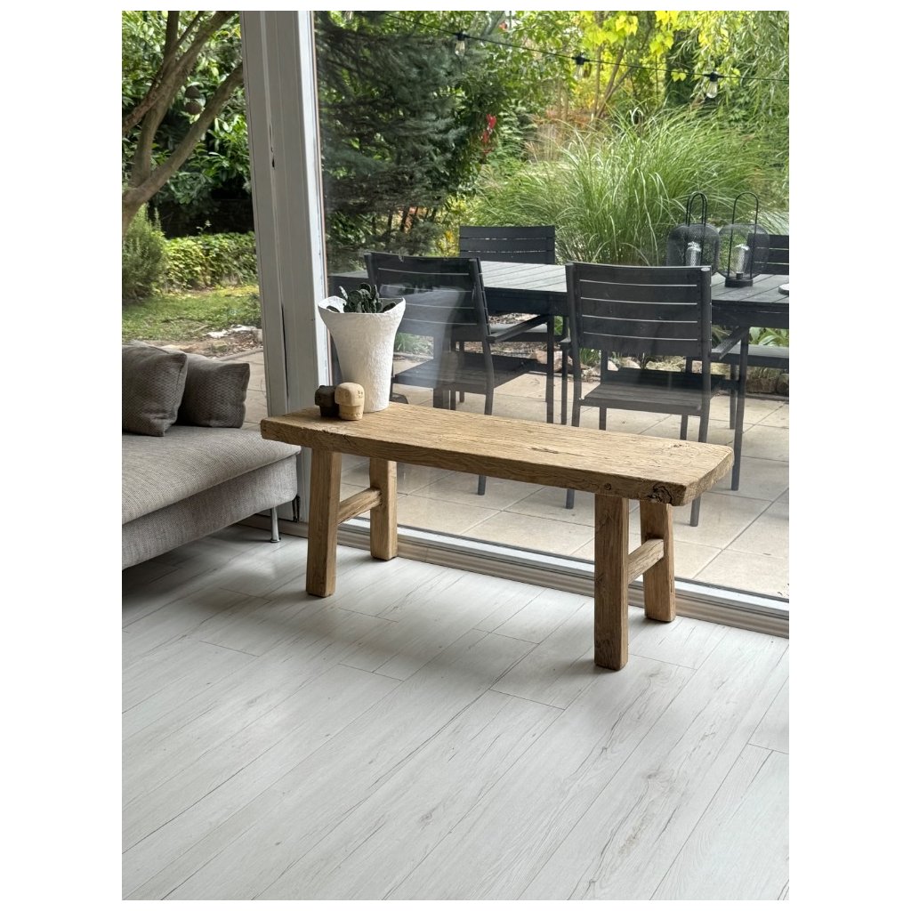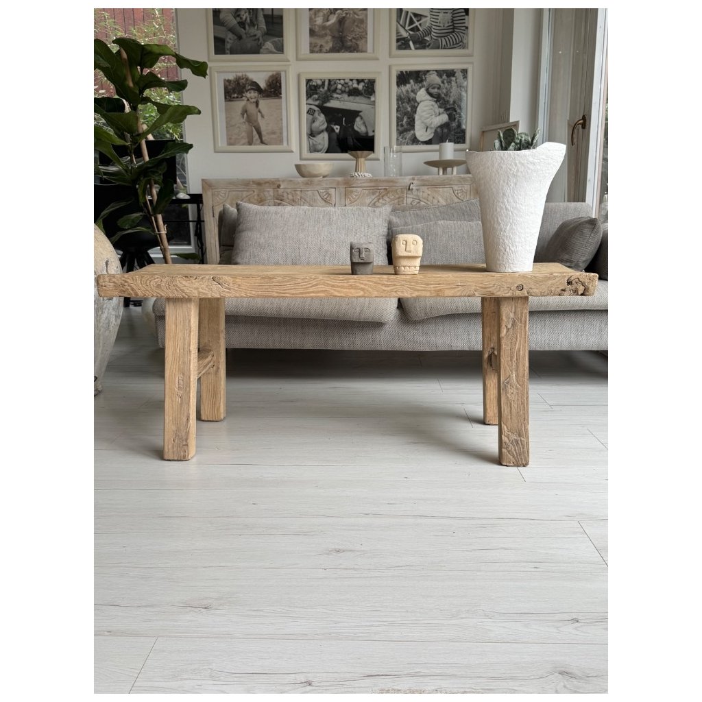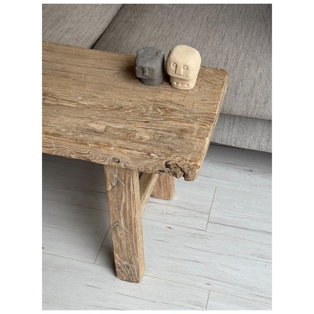 Objevte krásu, která vznikala více než jedno století. Tato lavice či stolek je vyrobena z plaveného jilmového dřeva, které prošlo rukama času i přírody. Každá prasklina, každý detail na povrchu je stopou jeho dlouhé cesty - autentická poezie dřeva, kterou nelze nikdy napodobit.