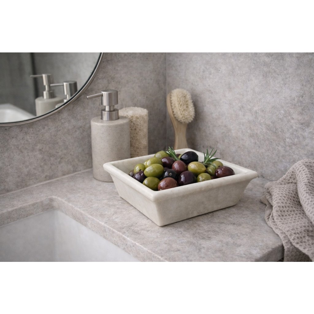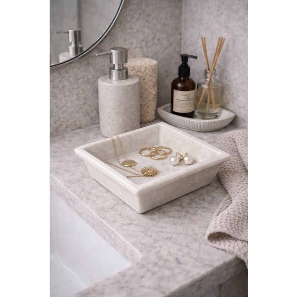 Nadčasová mramorová miska v jednoduchém čtvercovém tvaru, která zaujme svou přirozenou krásou a jemnou strukturou kamene. Každý kus je originál - kresba mramoru se lehce liší, což dává misce autentický a luxusní charakter.