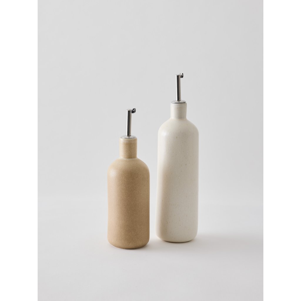 Elegantní nádoba na olej z krémově zbarvené kameniny je krásným i praktickým doplňkem každé kuchyně. Jemný matný povrch a čisté linie působí klidně a nadčasově - přesně ten typ detailu, který necháte stát na lince i během návštěvy.