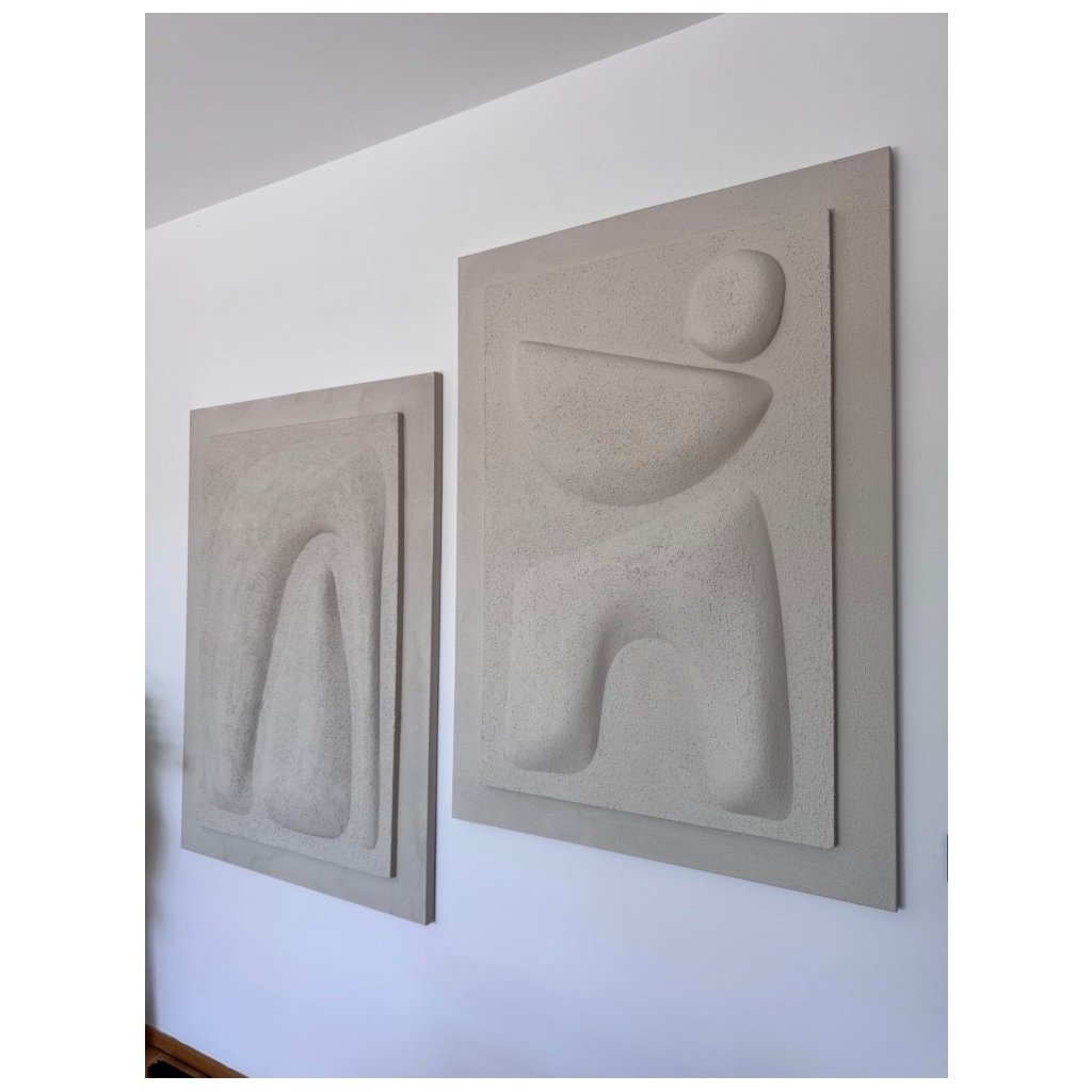 Minimalistická kompozice s jemně modelovaným 3D povrchem vytváří hru světla během celého dne. Struktura působí přirozeně , téměř kamenně, a dodává interiéru hloubku a klid.