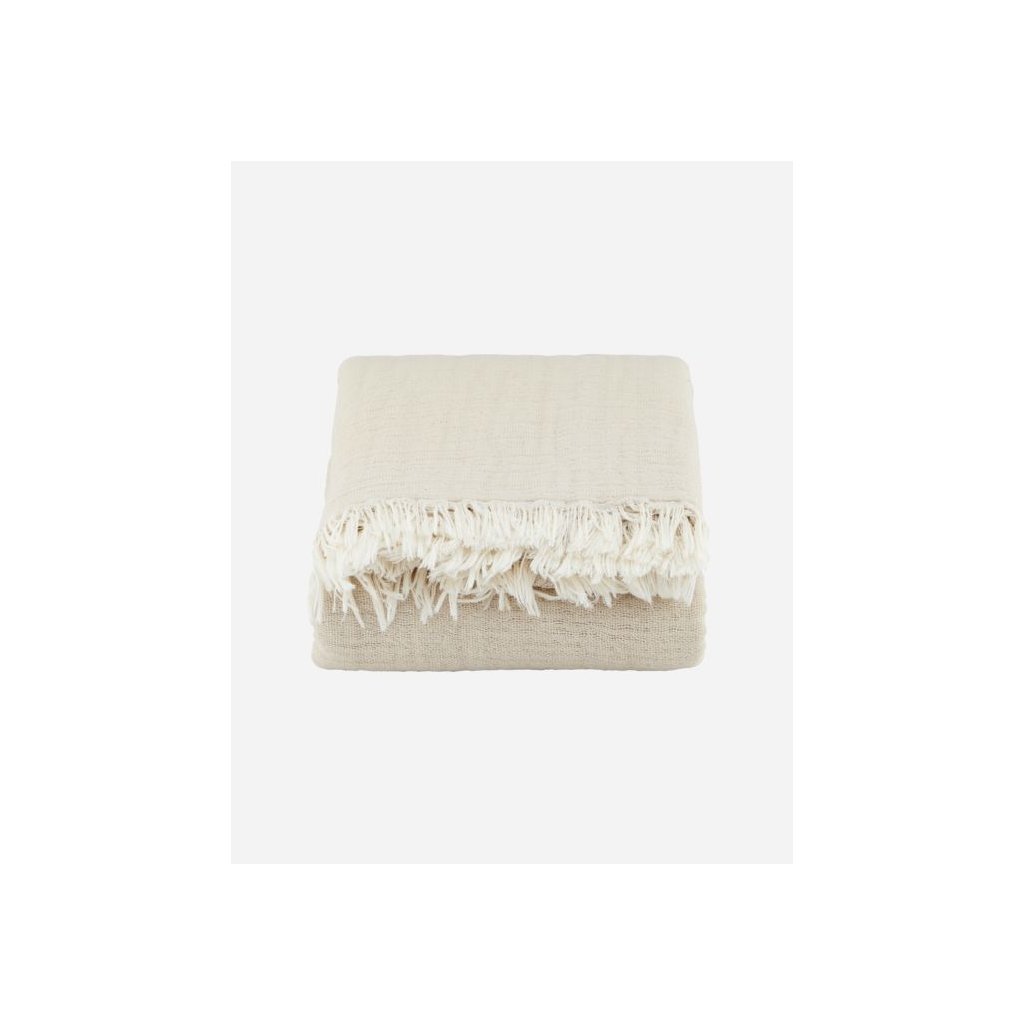 Zahalte se do měkkého pohodlí s tímto elegantním plédem v jemné krémové barvě. Vyrobený ze 100 % kvalitní bavlny, je nejen příjemný na dotek, ale také prodyšný a vhodný pro každé roční období. Rozměr 140 x 200 cm zajišťuje dostatek prostoru pro relaxaci na pohovce, v křesle nebo jako stylový přehoz na postel.