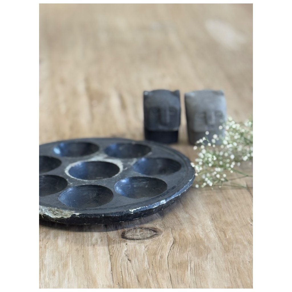 Tento malý, ale výrazný strážce domova vnese do vašeho domova energii, ochranu a jedinečný charakter. Ručně vytesaný z přírodního kamene v tmavším odstínu působí minimalisticky a zároveň silně - přesně v duchu wabi - sabi.