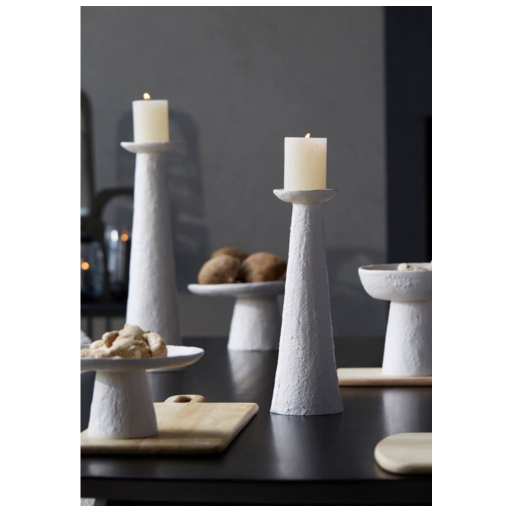 Elegantně štíhlý, s jemně hrubou strukturou a krémovým povrchem , který ladí s denním světlem i mihotavým plamenem. Tento svícen je esencí minimalismu - tvarově čistý a přesto s osobností. V interiéru působí jako klidný monument, který dodá prostoru hloubku a harmonii.