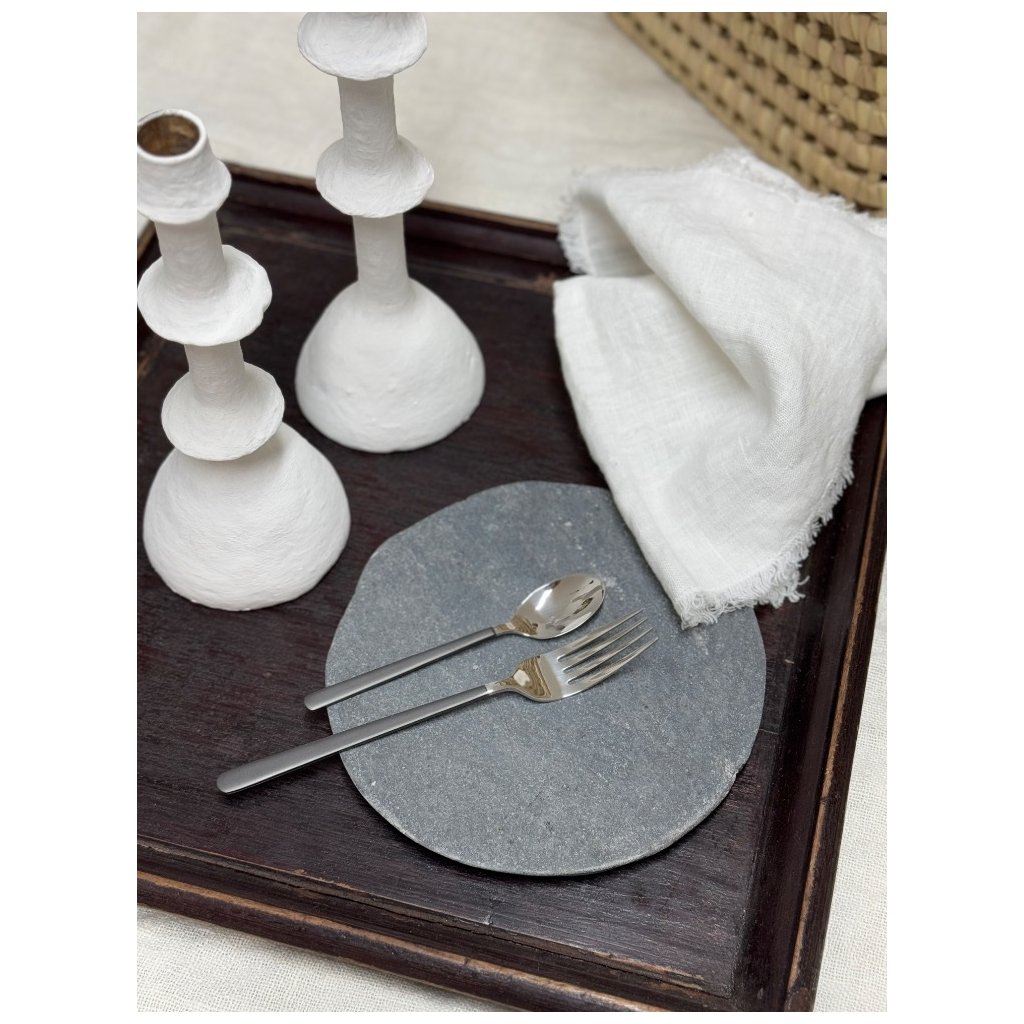 Díky své přirozeně šedé barvě a surovému povrchu nádherně doplní moderní, minimalistické, skandinávské či japandi interiéry. Funguje skvěle jako podnos pod svíčky, difuzéry, sošky, šperky nebo jako malý dekorativní solitér, který dodá prostoru hloubku a přírodní harmonii.