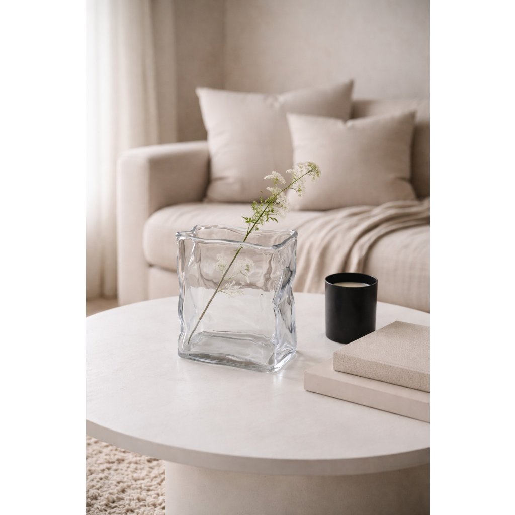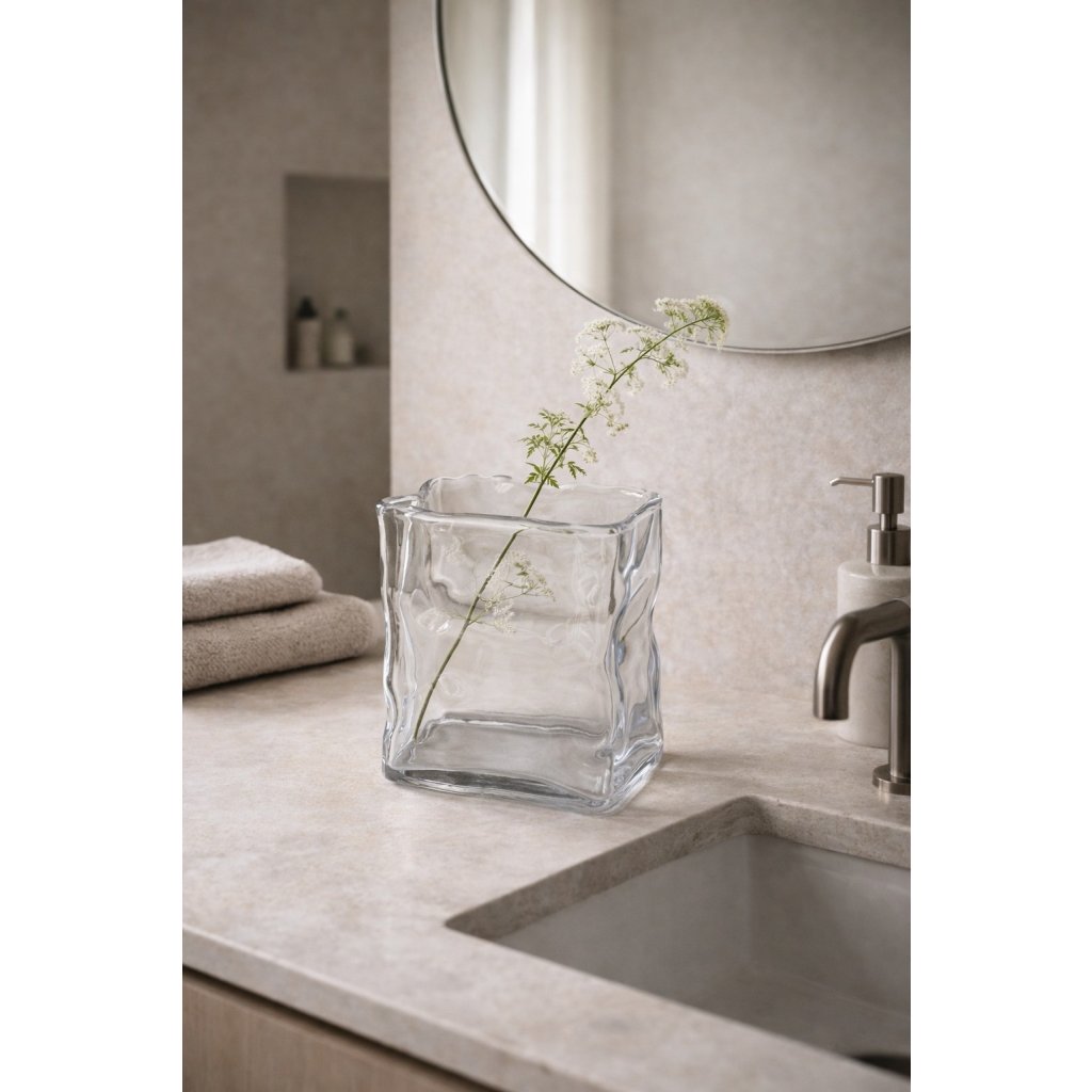Minimalistická a přesto výjimečná. Tato skleněná váza o rozměrech 8 x 15 x 18 cm je ručně vyrobeným uměleckým kouskem, který zaujme svými organickými liniemi a nepravidelným tvarem. Každý kus je originál - lehce zvlněné sklo odráží světlo a vytváří hru odlesků, která vynikne jak se samotnou větvičkou, tak s jednoduchou květinou. Ideální pro interiéry laděné do přírodního, japandi nebo wabi-sabi stylu.