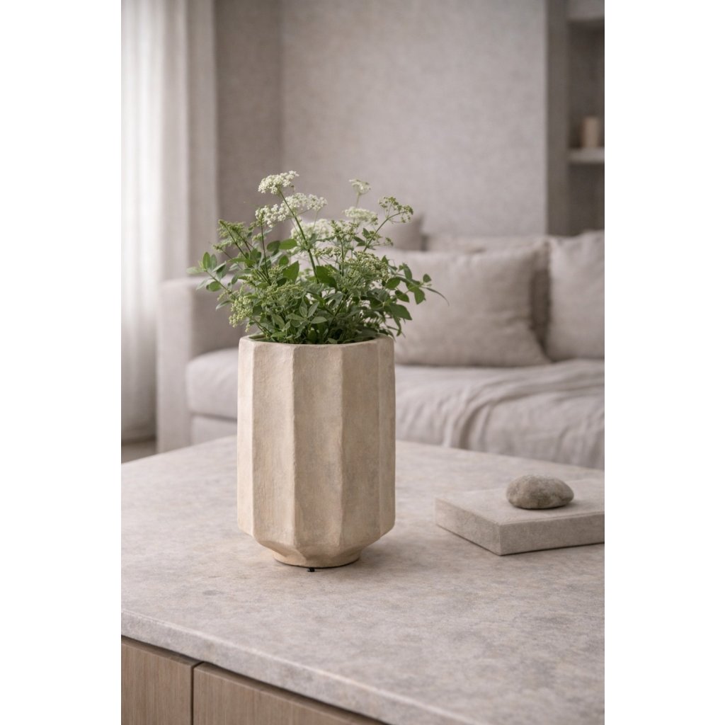 Váza UNIQUE je ztělesněním moderního řemesla a nadčasového designu. Ručně vyrobená z pevného papermache v přírodní barvě , která ladí s jakýmkoli interiérem - od minimalismu po boho styl. Díky svému originálnímu rýhovanému povrchu a jemné nepravidelnosti působí jako umělecký objekt, který vnáší do prostoru klid, harmonii a eleganci.